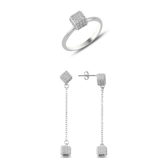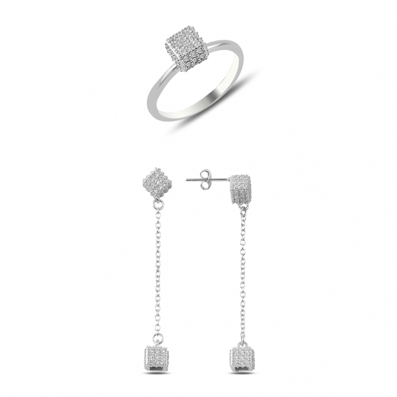Rodyum Kaplama Zirkon Taşlı Küp Gümüş Bayan Set